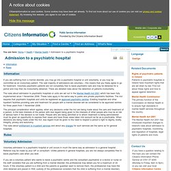 Mental Health: Admissions, Involuntary Treatment, And Medication